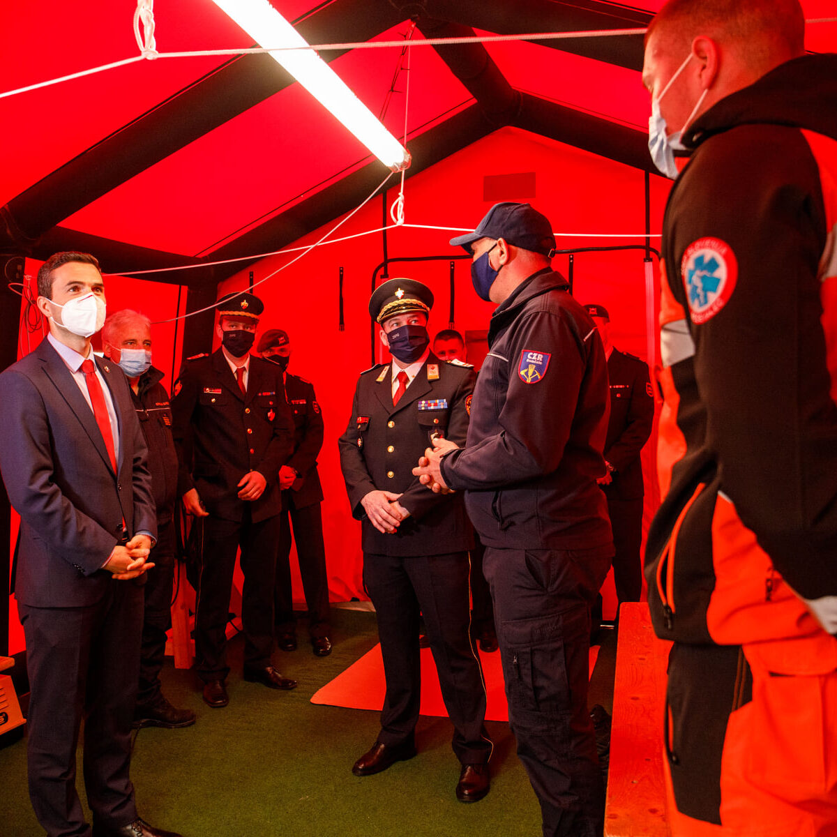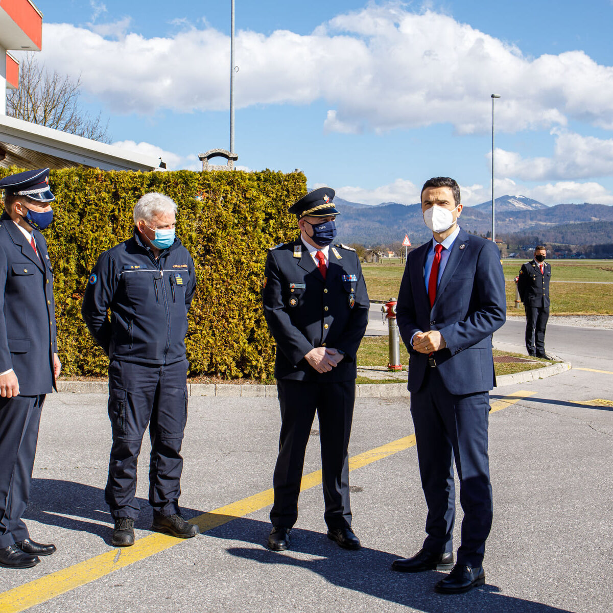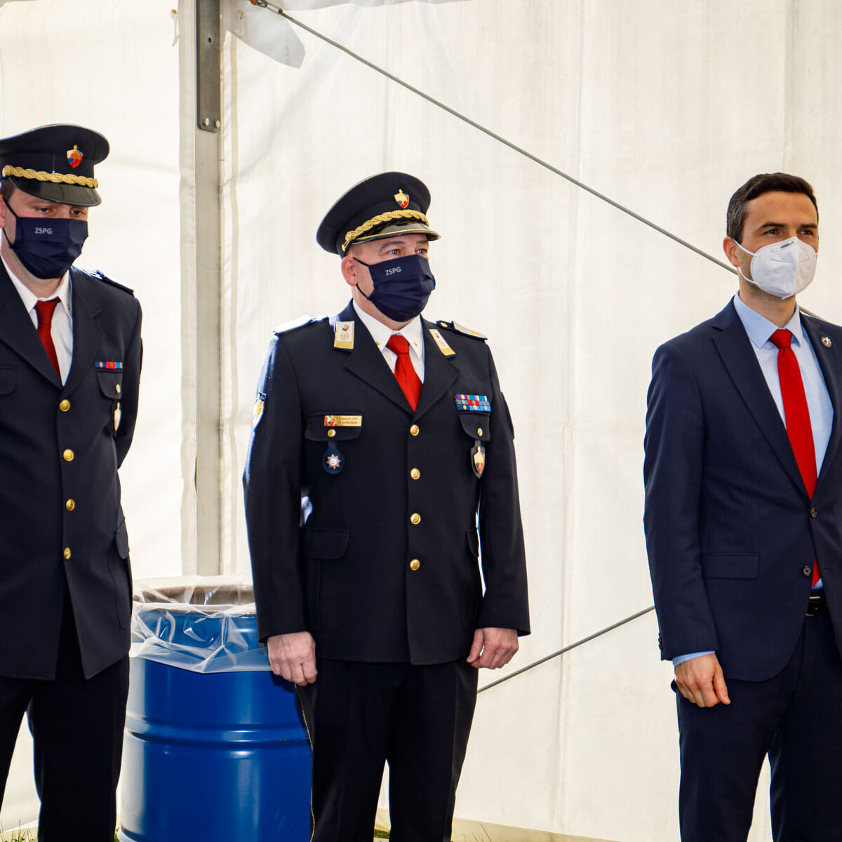 Svečani dogodek, ki je potekal v torek, 16. 3. 2021, smo pripravili zaradi Podelitve spominskega znaka “Za požrtvovalnost v boju proti COVID–19”. Na podlagi 7. člena Uredbe o spominskem znaku »Za požrtvovalnost v boju proti COVID-19« je pristojna komisija na predlog predsednika vlade Republike Slovenije g. Janeza Janše, potrdila poklicni gasilski enoti »CZR Domžale in PGE Celje » na predlog združenja slovenskih poklicnih gasilcev za prejemnika spominskega znaka »Za požrtvovalnost v boju proti COVID-19« Direktor-poveljnik PGE Krško Aleš Stopar pa je prejel priznanje CZ. Ministra za obrambo so sprejeli predsednik ZSPG Miran Korošak, direktor URSZR Darko But in direktor CZR Domžale Andrej Jarc.