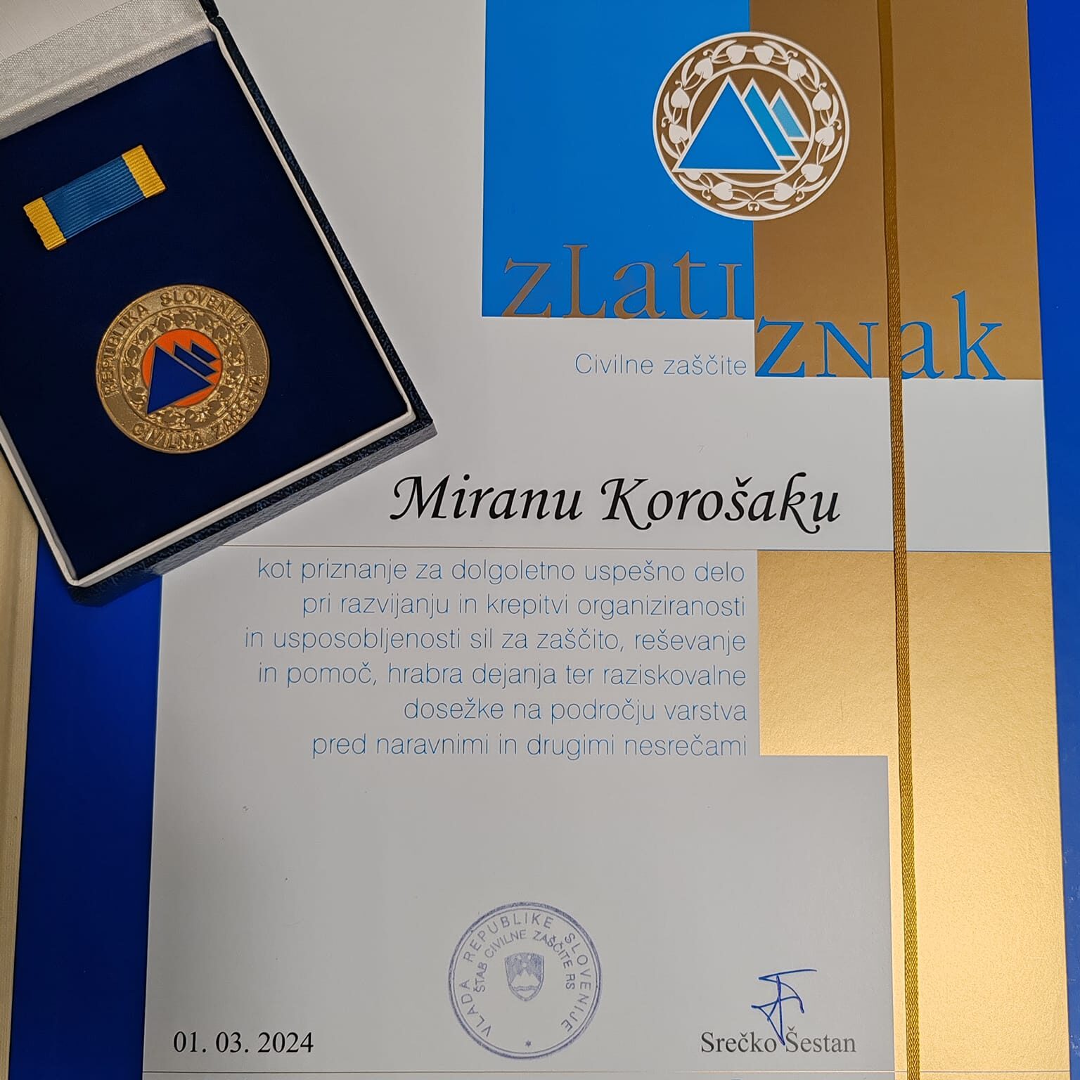 Miran Korošak – Zlati znak Civilne zaščite